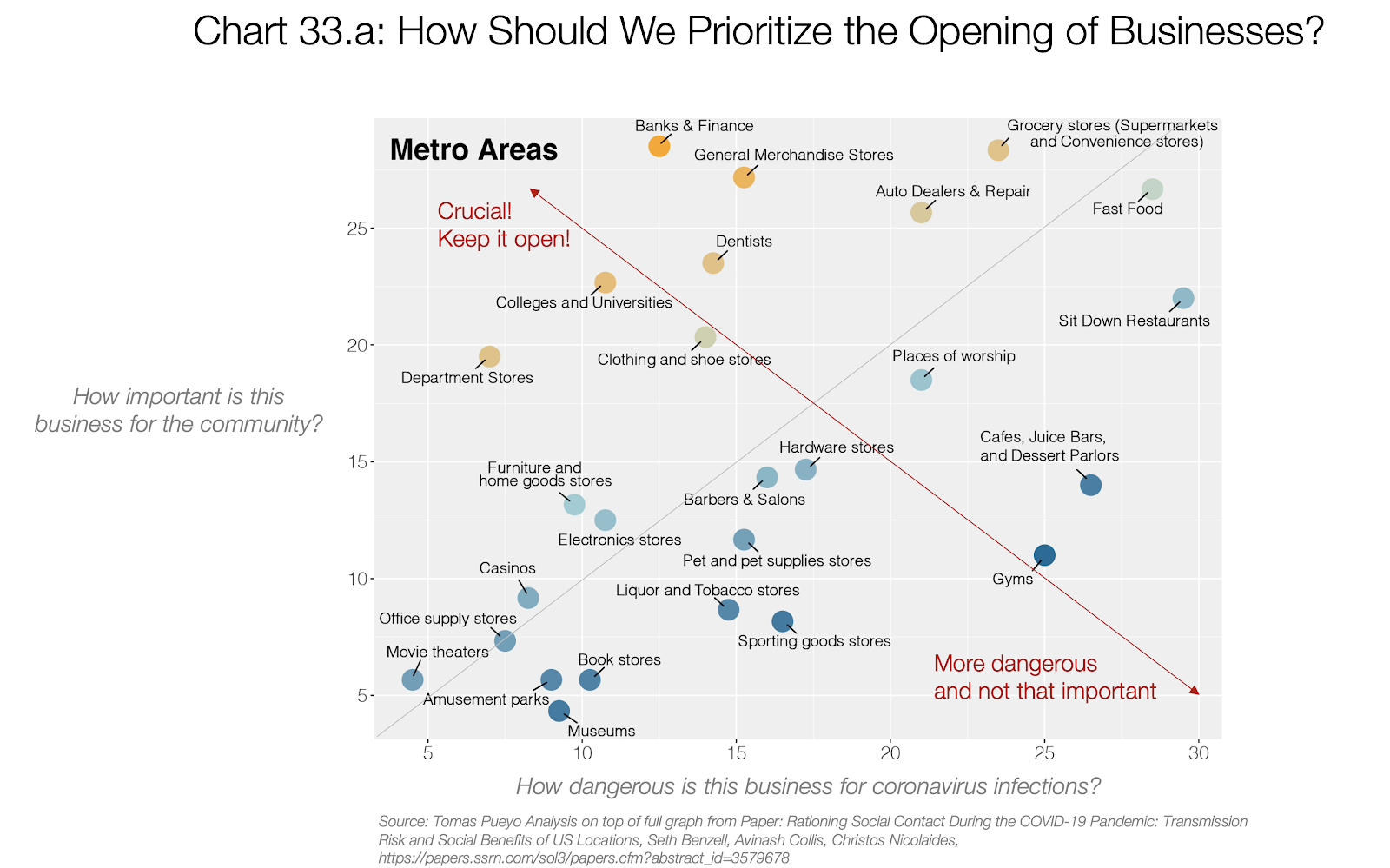 We have developed a number of packages to choose from to provide customized advice and support to businesses looking to re-open safely and you can find more information here. The challenges with opening a business are widely varied and there has been a lot of discussion and disagreement on essential and non-essential. Breaking this down as seen in this chart